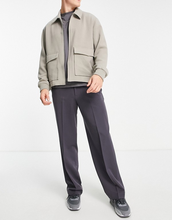 エイソス ASOS asos ASOS DESIGNハイウエストワイドレッグスマートパンツ、チャコールのディテールをカット パンツ ボトム メンズ 男性 インポートブランド 小さいサイズから大きいサイズまで