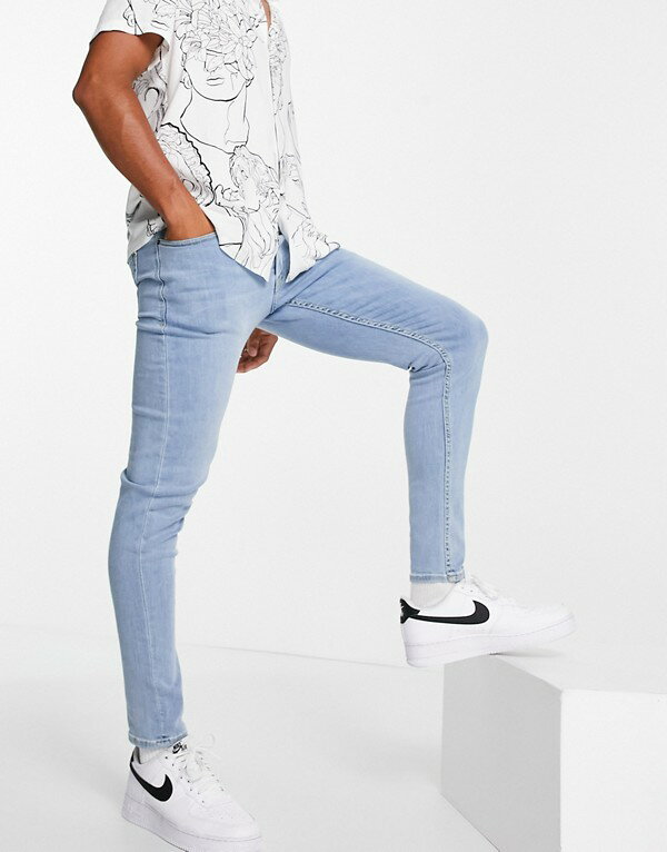 ニュールック New Look ライトウォッシュドブルーのニュールックスキニージーンズ パンツ ボトム メンズ 男性 インポートブランド 小さいサイズから大きいサイズまで