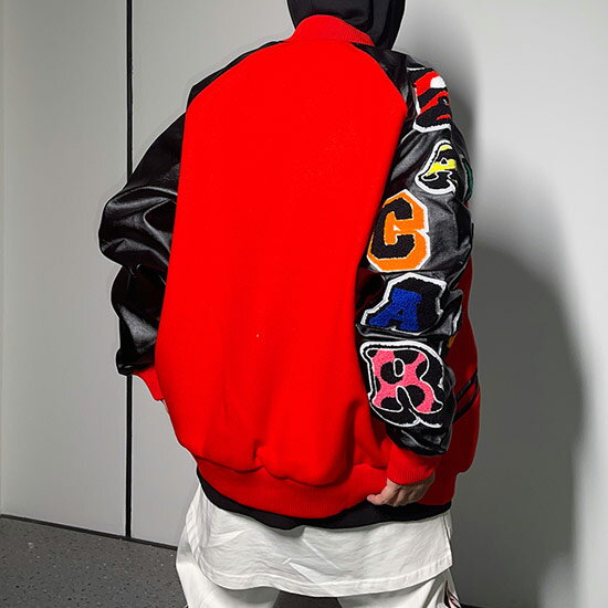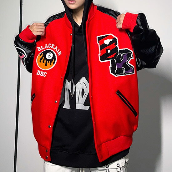 スタジャン メンズ ストリート系 ブルゾン 原宿系 メンズ ボア ワッペン ファイヤー PUレザー ストリート系 アウター メンズ インポート ミリタリージャケット 送料無料 2021 秋服 冬服 新作 30代 40代 B系 個性的 ホスト 悪羅悪羅系 オラオラ系 ヤンキー チンピラ アメカジ