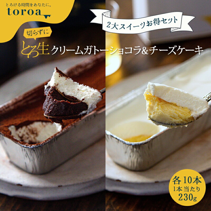 切らずにとろ生クリームガトーショコラ&クリームチーズケーキお得セット 各10本 送料無料 高級 お取り寄せ スイーツ ギフト 洋菓子 グランプリ テレビ toroa 【常温商品との同梱不可】