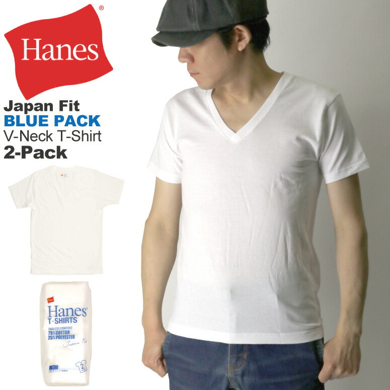 ★期間限定!最大20%OFFクーポン対象商品★【送料無料】Hanes(へインズ) ジャパンフィット ブルーパック Vネック Tシャツ 2パック カットソー【コンビニ受取対応商品】