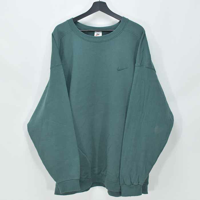 【中古】90's NIKE 刺繍ロゴ クルーネックスウェット USA製 海外直輸入USED品 クルーネック スウェット ロゴスウェット 90年代 ナイキ ヴィンテージTシャツ 古着 ブルー グリーン 裏起毛 スウッシュ ヘビーオンス XXL 90'sNIKEのワンポイントロゴスウェット。
