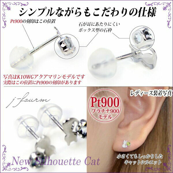 ペリドット ピアス プラチナ 900 猫 送料無料 シルエットキャット 8月 誕生石 ネコ 猫 Pt900 金属アレルギーに優しい fourm クリスマス 母の日 レディース メンズ 男性 女性 ラッピング 包装 袋 誕生日 プレゼント ケース 箱 華奢 可愛い