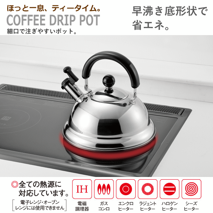 ケトル 2.5L IH対応 ガス火 ヤカン やかん 笛吹 ステンレス 湯沸かし EQ-250 省エネ コンパクト 調理器具 日本製
